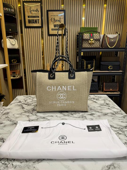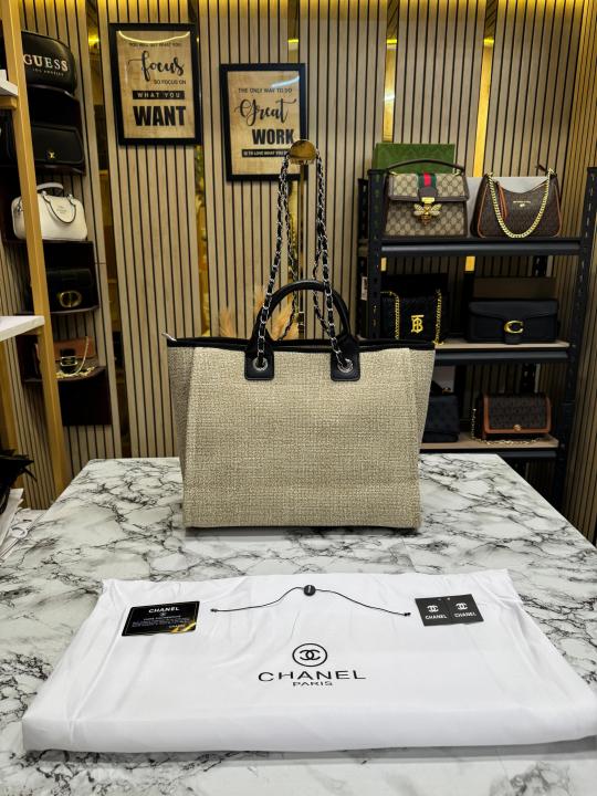 Chane_l Paris-Rue Cambon Timeless Tote Bag (Khaki Black)