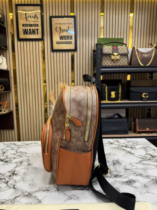 COAC_H LEATHER COURT WITH DUST BAG PREMIUM QUALITY BAGPACK [APRICOT BROWN]