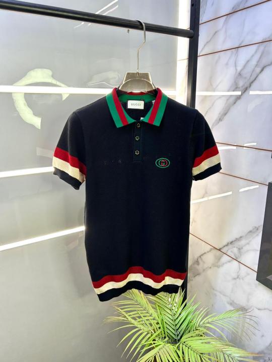 Gucc i Black Imported knitted Premium Collar Neck Polo T-shirt F3440-BL