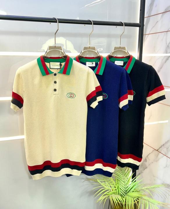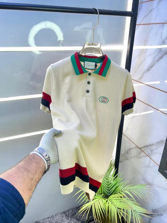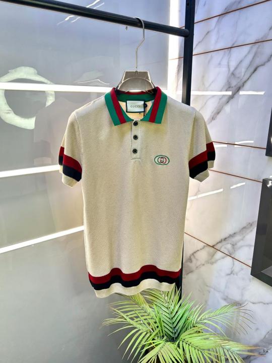 Home T-Shirts Gucc i Cream Imported knitted Premium Collar Neck Polo T-shirt F3440-CR
