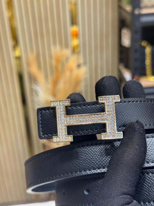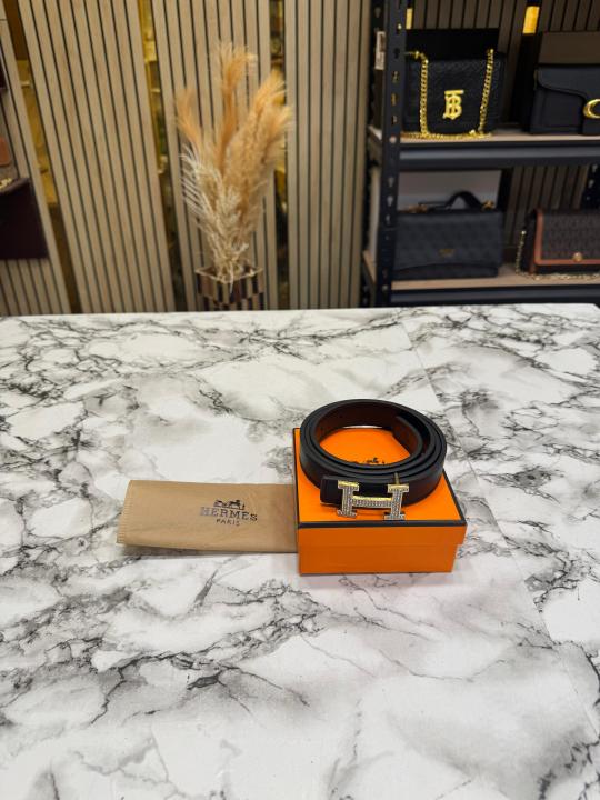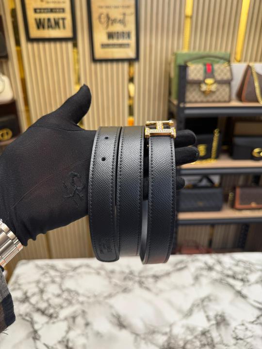 HERMES PREMIUM BELT WITH OG BOX DUST BAG H49-BLACK