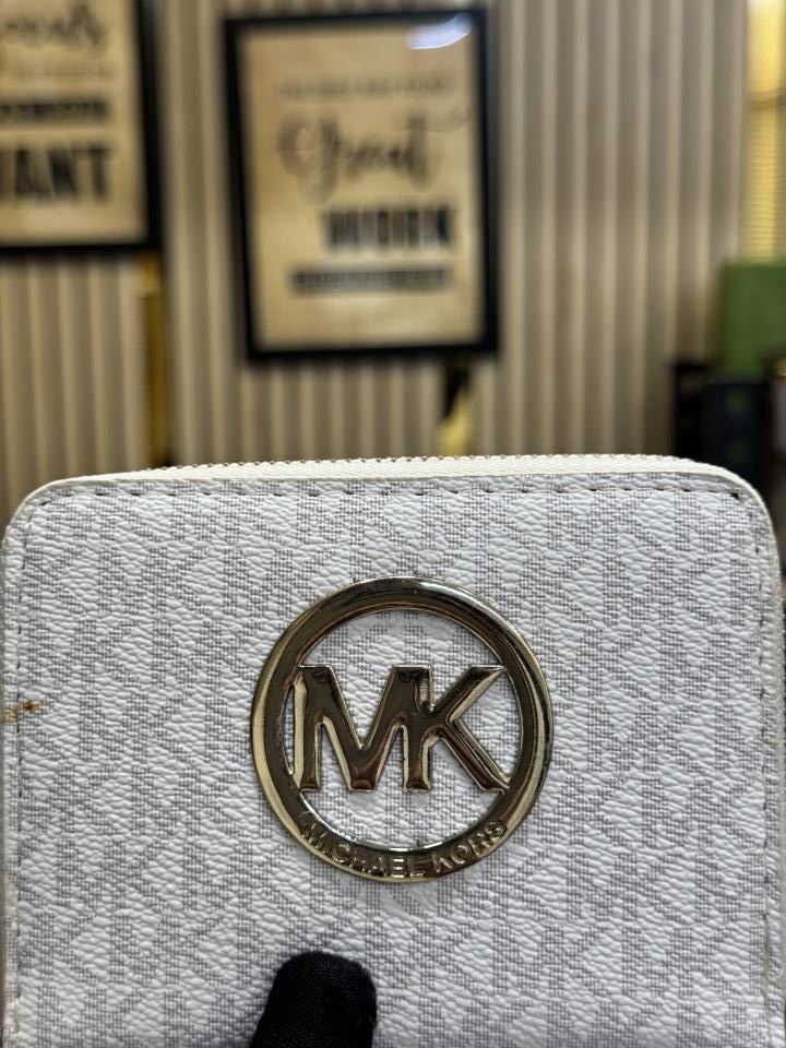 Michael_Kors MK Printed Logo Zipper Wallet With Box (Beige - 60067)